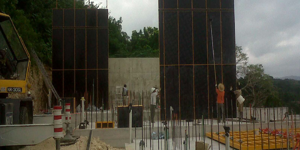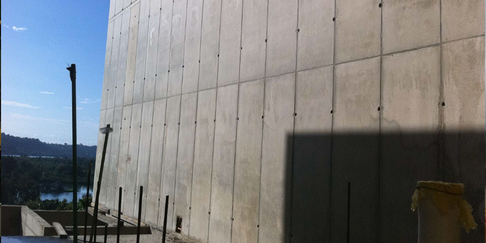 Cast in situ concrete 8 m high walls with structural steel as the structure for the 1rst floor level